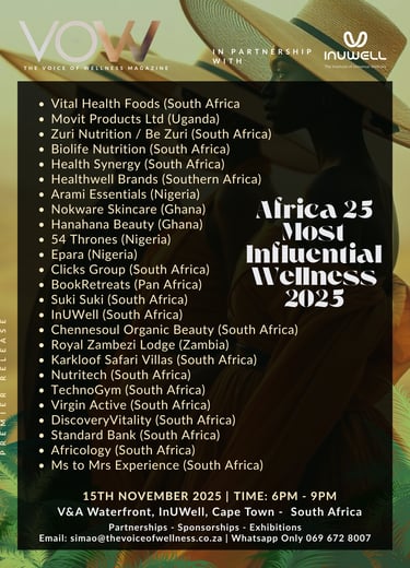 #VoiceOfWellness #VOWGala2025 #WellnessAfrica #CapeTownEvents #HolisticLiving #ConsciousLeadership #InUWell #VandAWaterfront